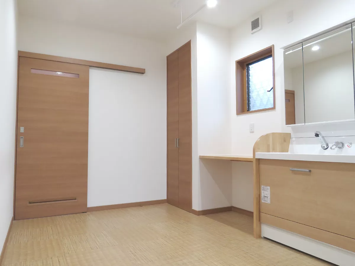 六畳の洗面所を作り 、物干しの星姫様を二本付けて沢山の物干しをかけれるようにしました。