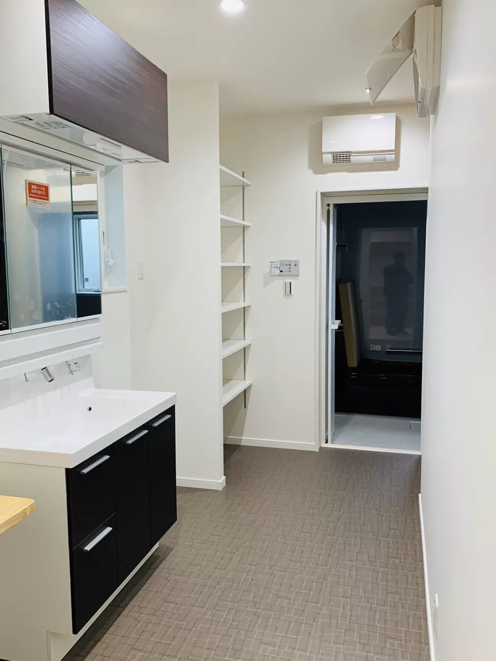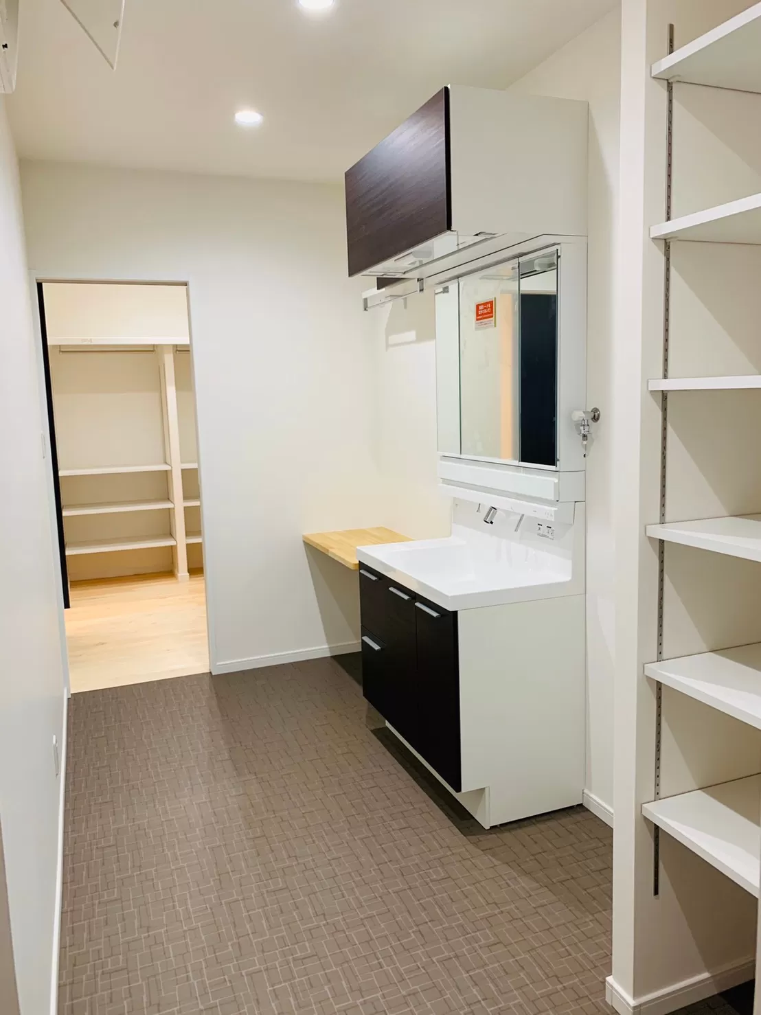 リビングから通じる洗面・脱衣・洗濯室&収納棚