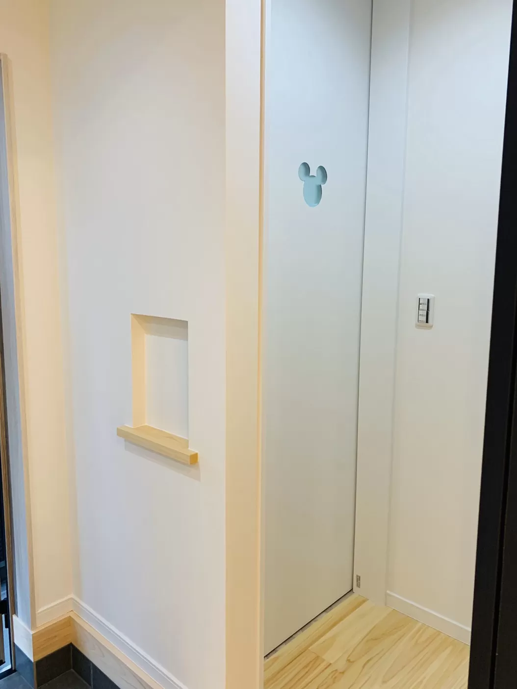 玄関先にあるトイレのドアーはパナのミッキーちゃん